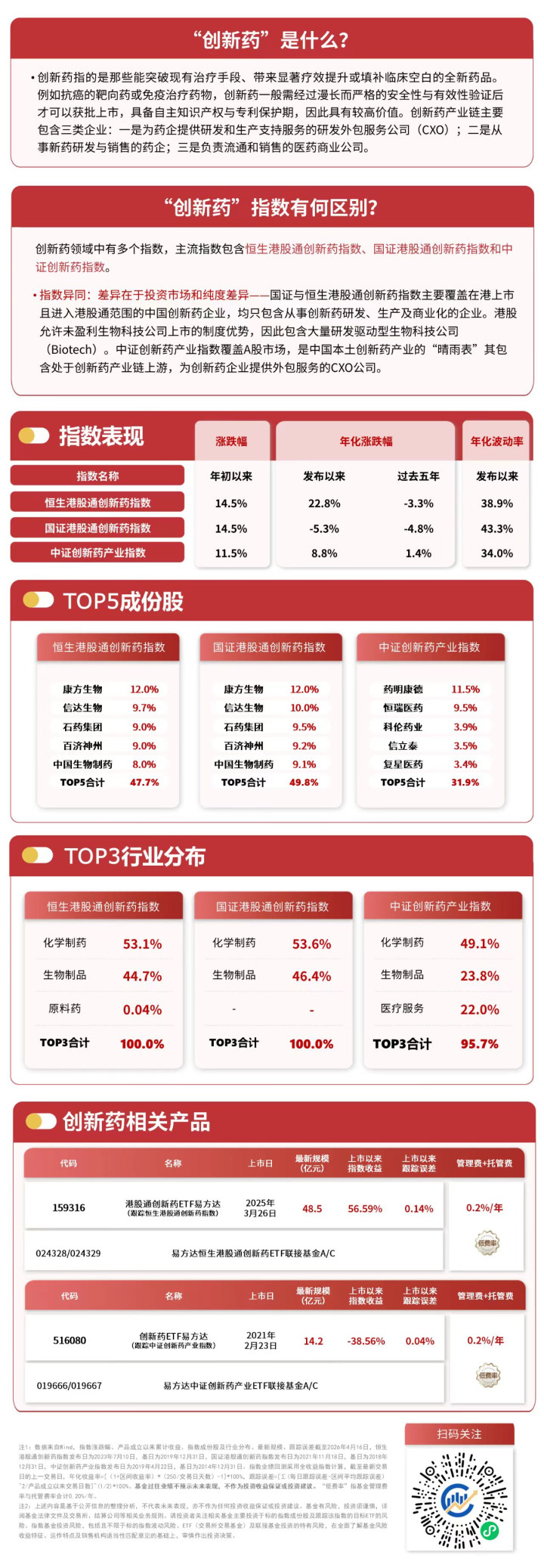 4月17日,市场走势分化,创新药板块震荡承压,午后有所回暖,截至收盘,恒生港股通创新药指数下跌1.0%,中证创新药产业指数下跌2.3%。Wind数据显示,截至昨日,港股通创新药ETF易方达(159316,联接基金A/C:024328/024329)近6个交易日有5个交易日获资金净流入,合计超3亿元;创新药ETF易方达(516080,联接基金A/C:019666/019667)则连续8个交易日获资金净流入,合计9300万元。